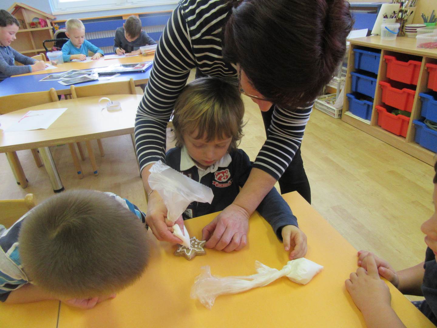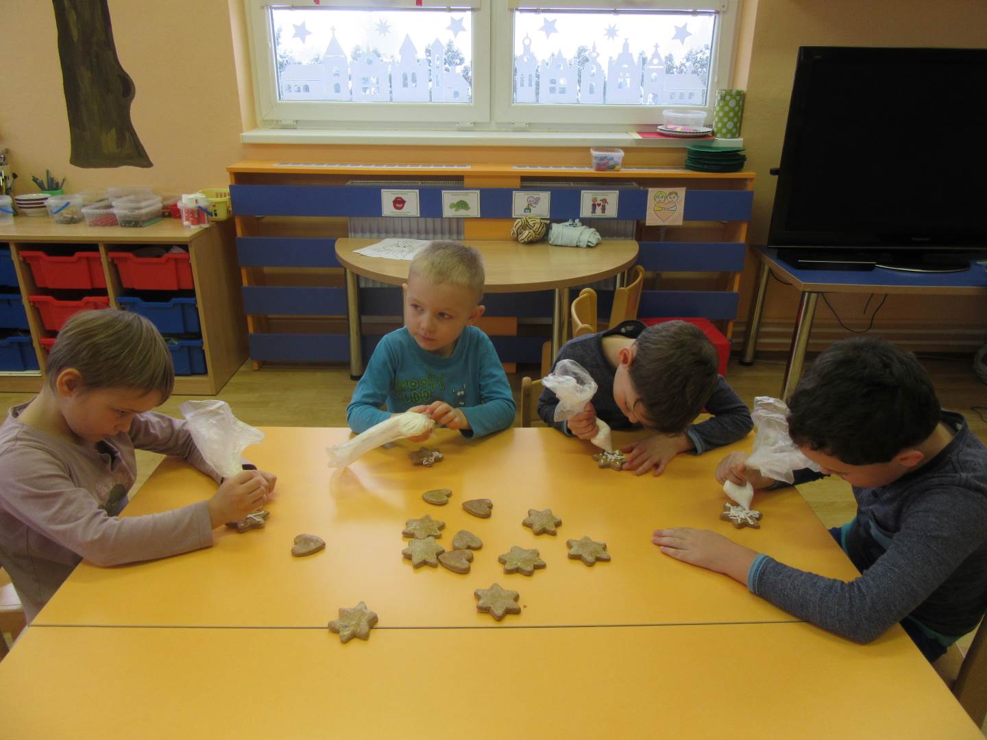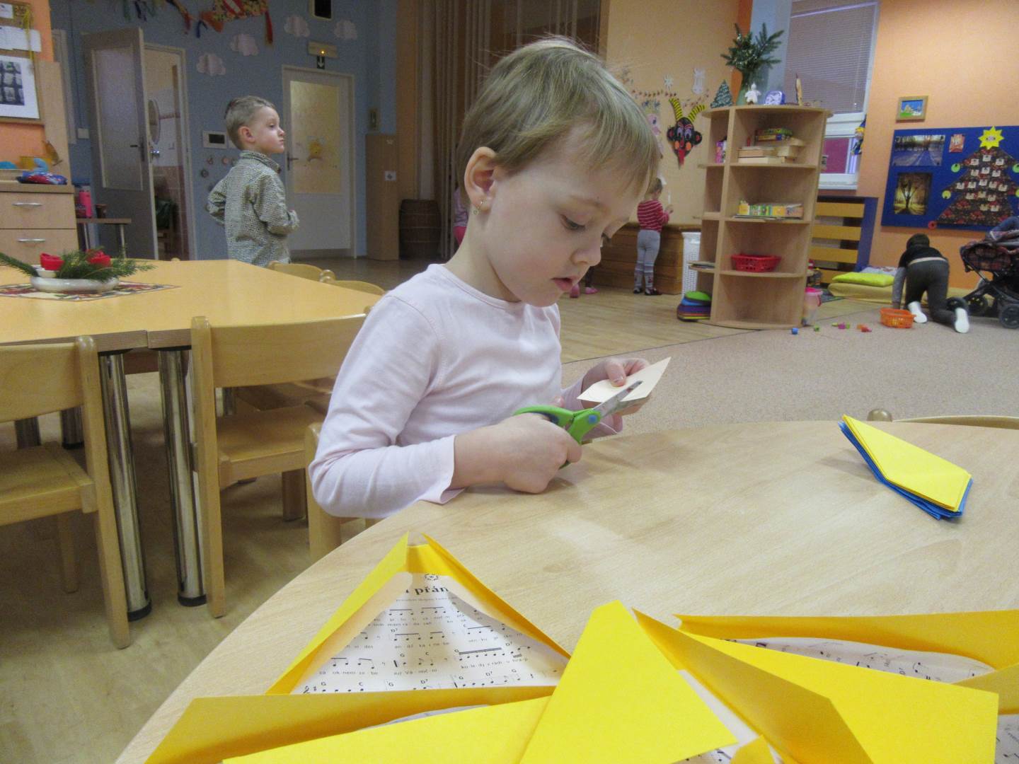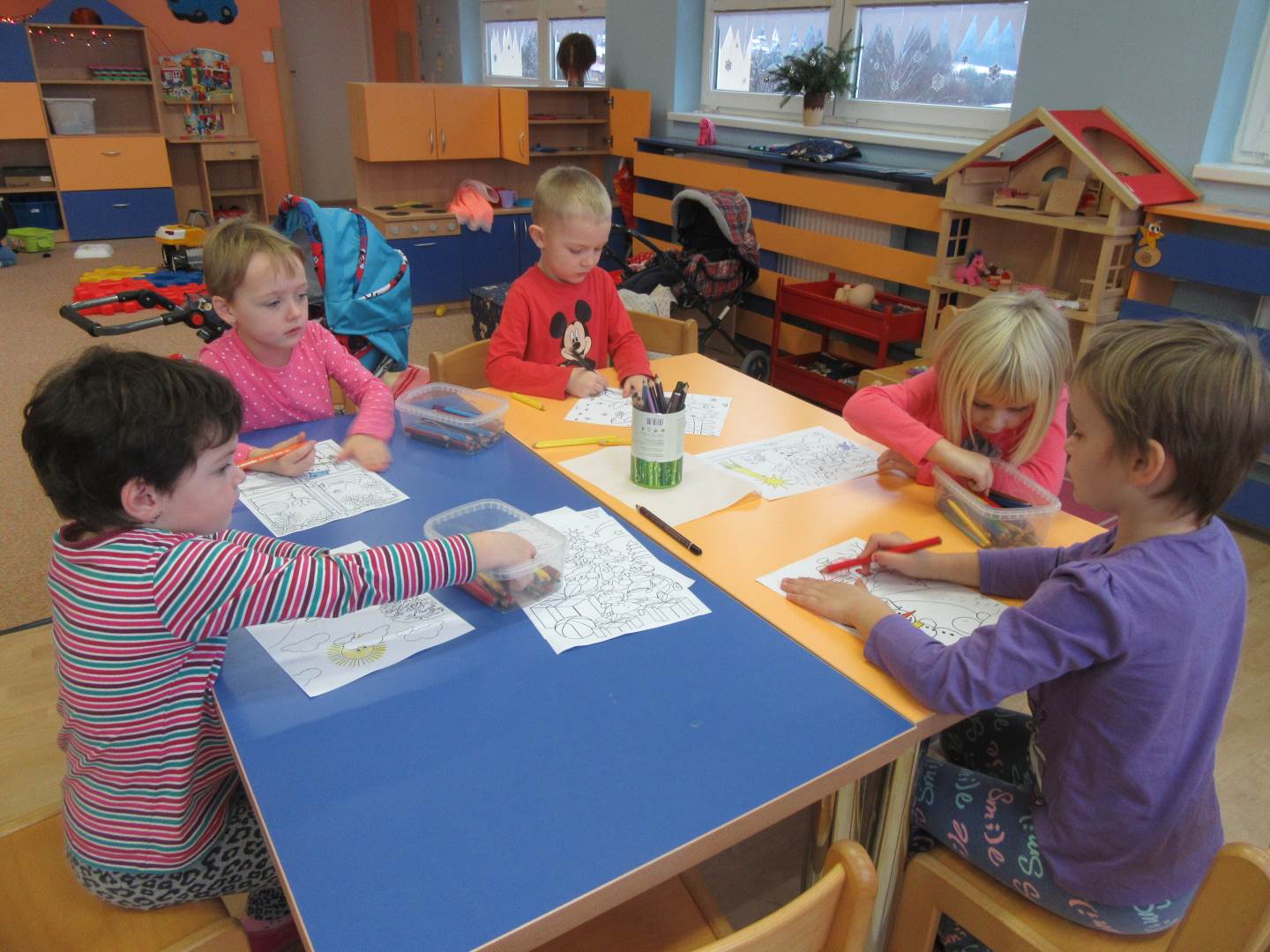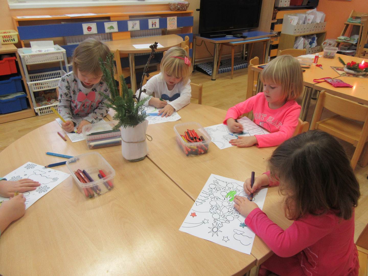V pondělí jsme s dětmi zapálili první svíčku na edventním věnečku. Celý týden se tak nesl v předvávočním duchu. Krásným zážitkem bylo vystoupení ZUŠ z Velkých Opatovic. Zpívali jsme koledy a vyprávěli si o vánočních zvycích, trhali jsme větvičky na svatou Barborku. Děti si také kreslily, co by si přály pod stromeček. Povídali jsme si také o nadílce pro zvířátka a chystáme se ke krmelci. Kdo bude chtít, může zvířátkům donést něco na zub.