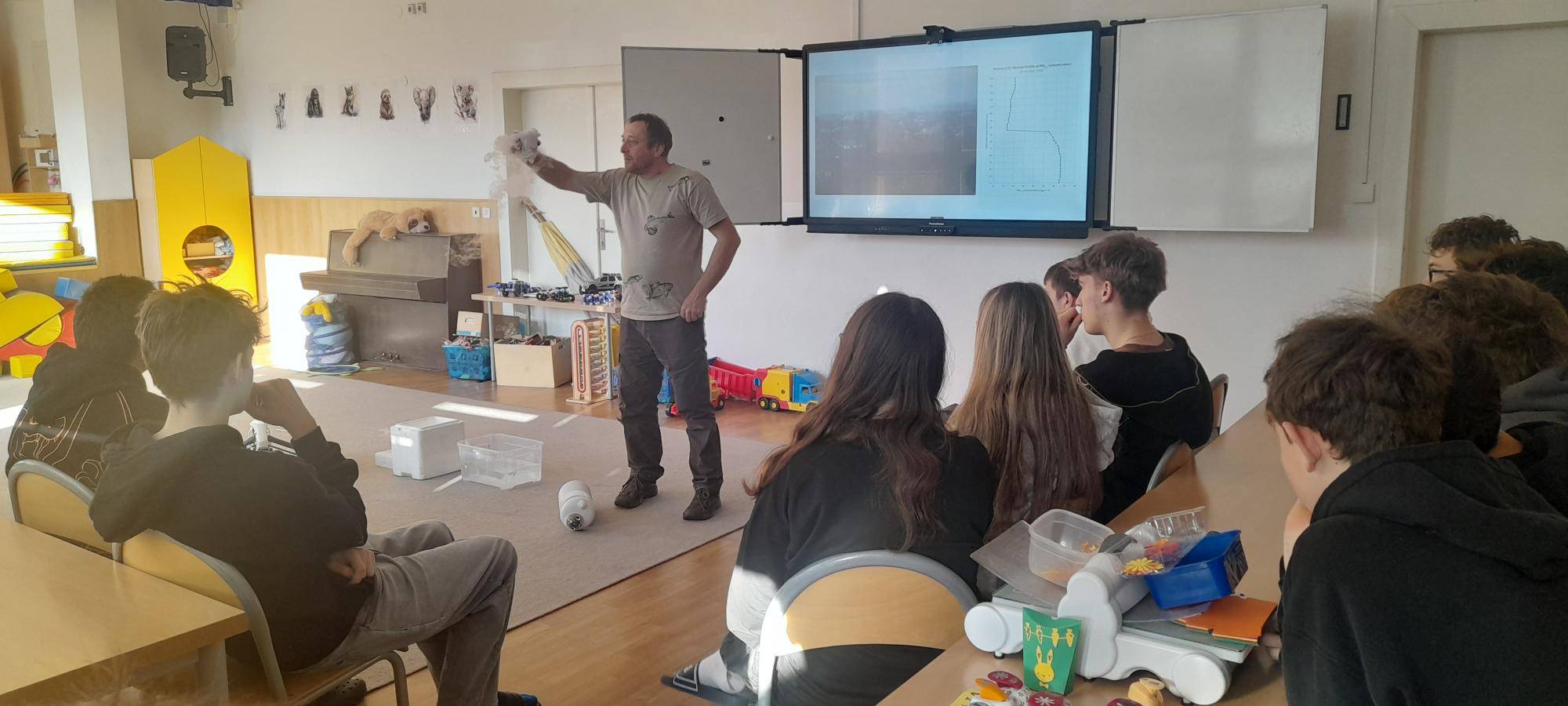 Dne 1. dubna 2026 se žáci 9. ročníku zúčastnili přednášky na téma ekologie, zaměřené na kvalitu ovzduší v obcích Knínice, Sudice a Benešov. Součástí programu byl také zajímavý pokus se suchým ledem, který názorně ukázal, jak se mlha může usazovat nad obcemi a ovlivňovat tak kvalitu ovzduší. Přednáška přinesla mnoho nových informací o znečištění ovzduší a jeho dopadech na životní prostředí i zdraví lidí. Žáci si odnesli spoustu zajímavých poznatků.