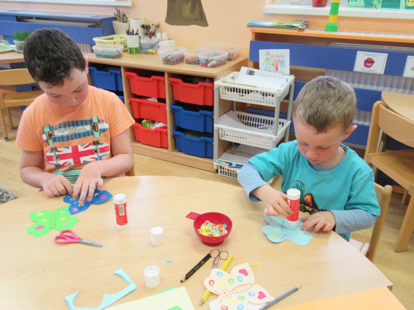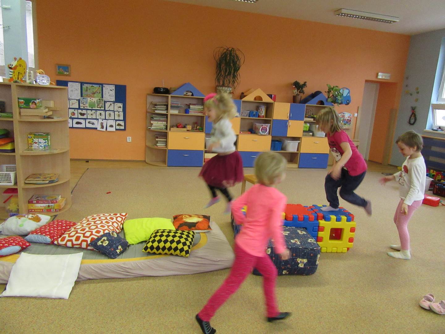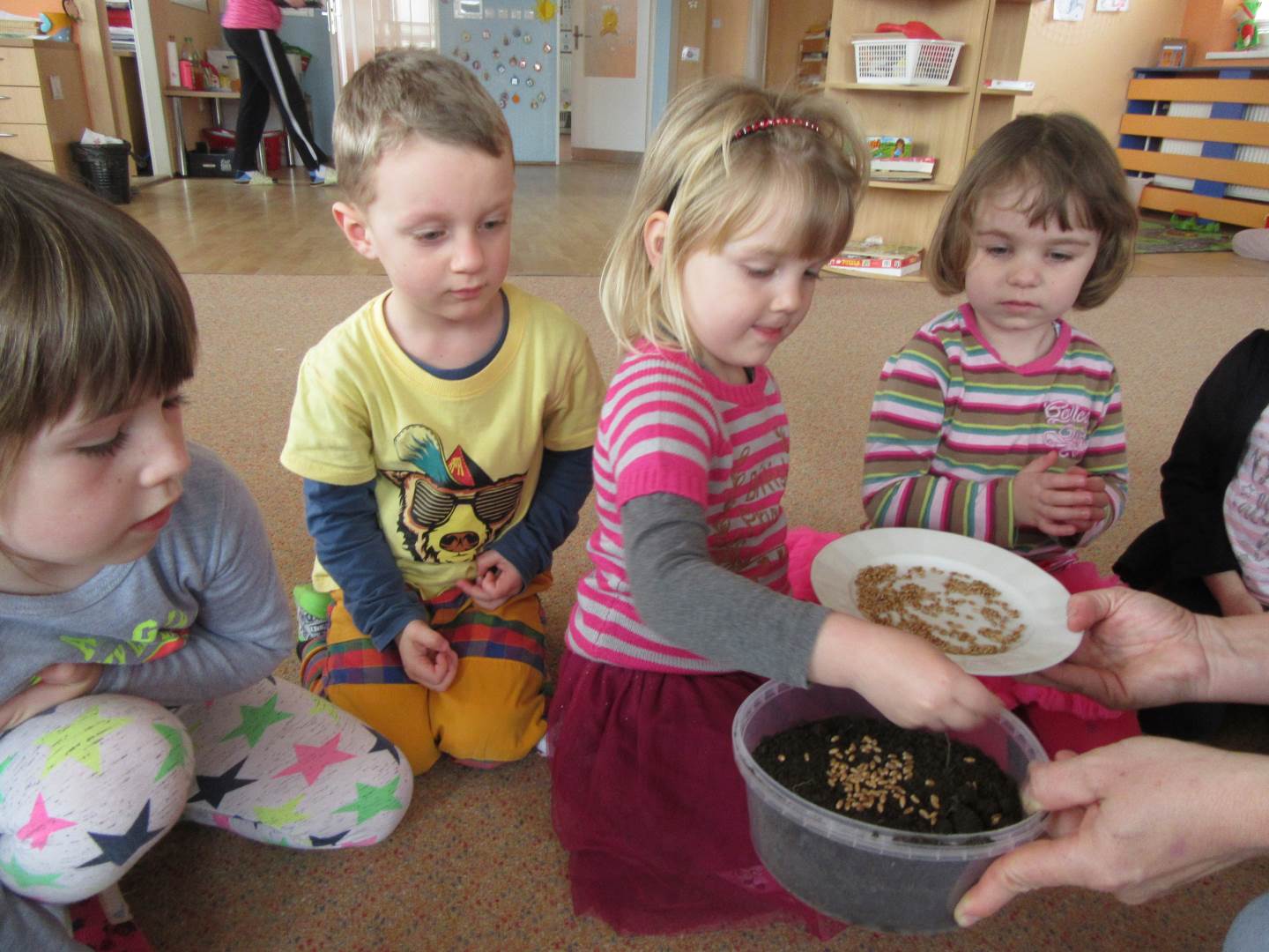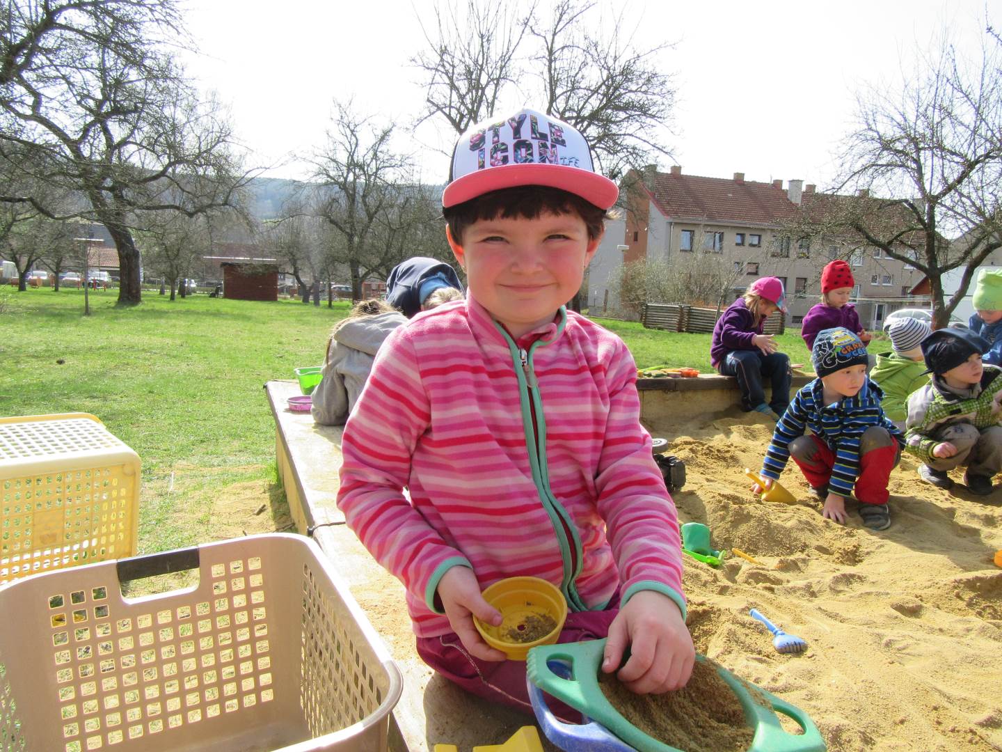 Začali jsme krásným příběhem Jak Krtek budil zvířátka, hmyz a ptáčky. Děti si také zahrály na mravenečky v lese a nosily klády, při pohybu s kládami zvládly i hezkou básničku. .Písničkou Probudil se malý brouček jsme zahájili pozorování hmyzu na zahradě, dokonce nás navštívil i slepýš.Pozorovali jsme také podrobný rúst rostlinky ze semínka. Pokusili jsme se rostlinky pěstovat za různých podmínek a srovnávali jsme jak rostou.Jaro je krásné roční období, proto si ho užíváme hlavně venku na sluníčku.