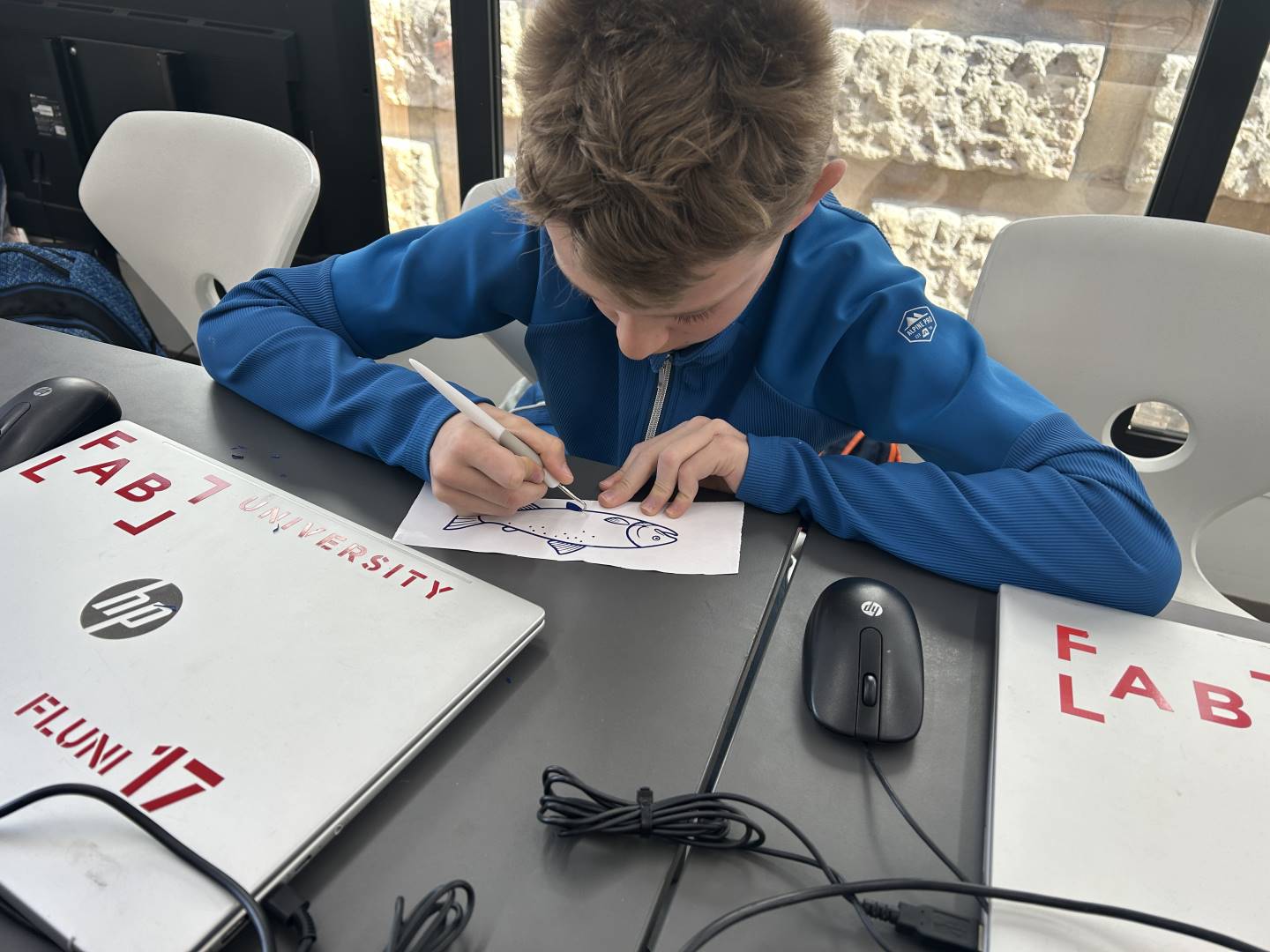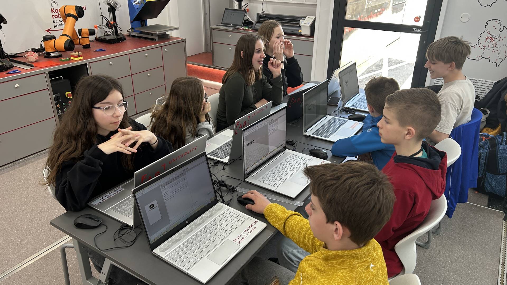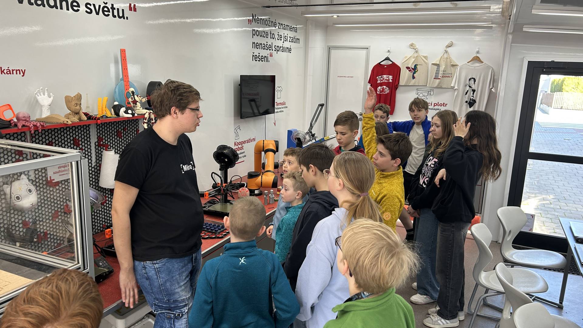 Žáci kroužku Kreativní dílna a žáci 6. třídy navštívili FabLab kamion s moderními technologiemi v Boskovicích. Vyzkoušeli si přípravu vlastního obrázku pro řezací plotr, práci se samolepicí fólií a celý proces řezání. Výsledkem byly originální výřezy, které si každý mohl odnést domů. Návštěva byla nejen zábavná, ale hlavně velmi inspirativní a ukázala žákům, jak lze kreativitu propojit s moderními technologiemi.