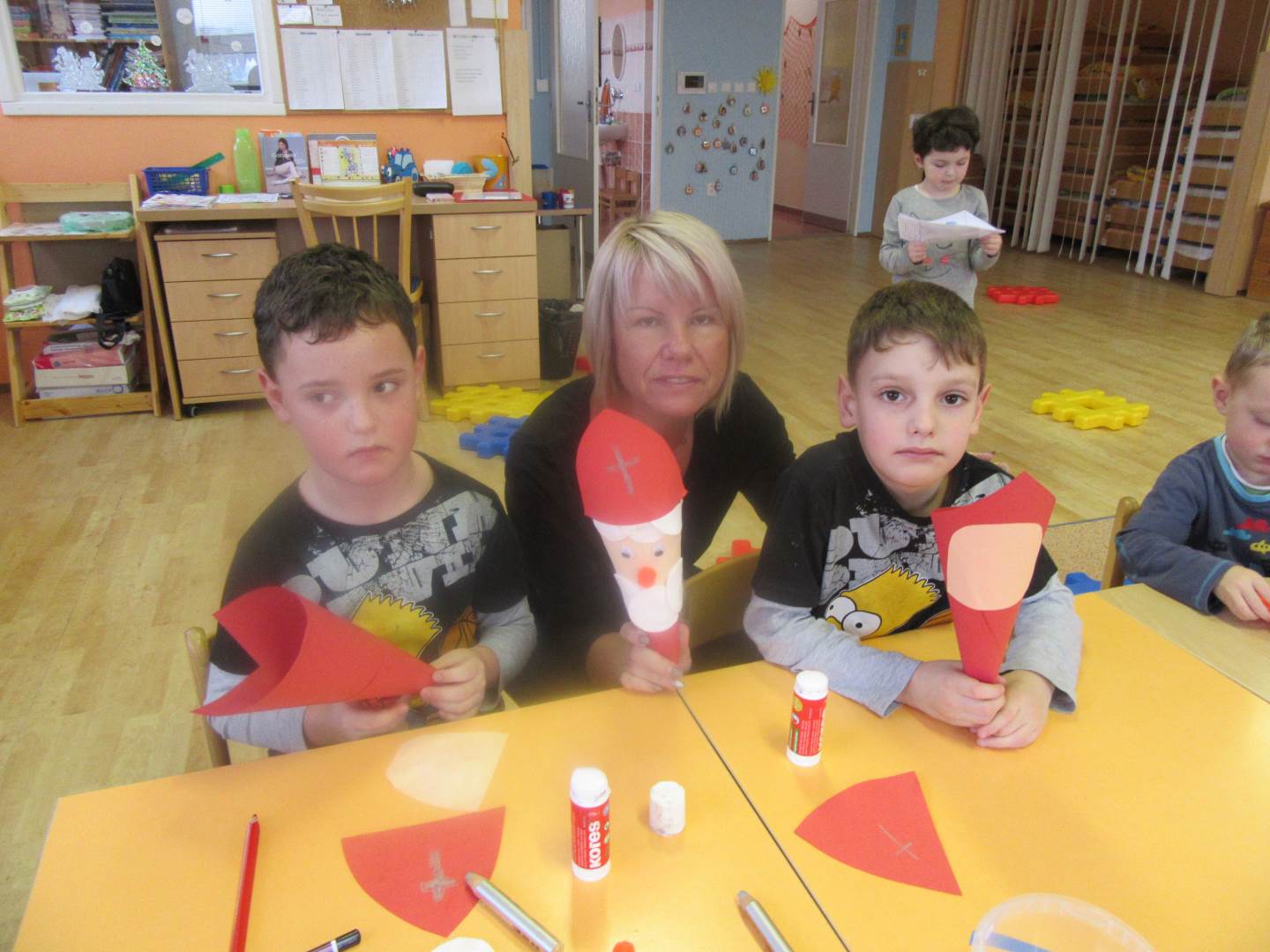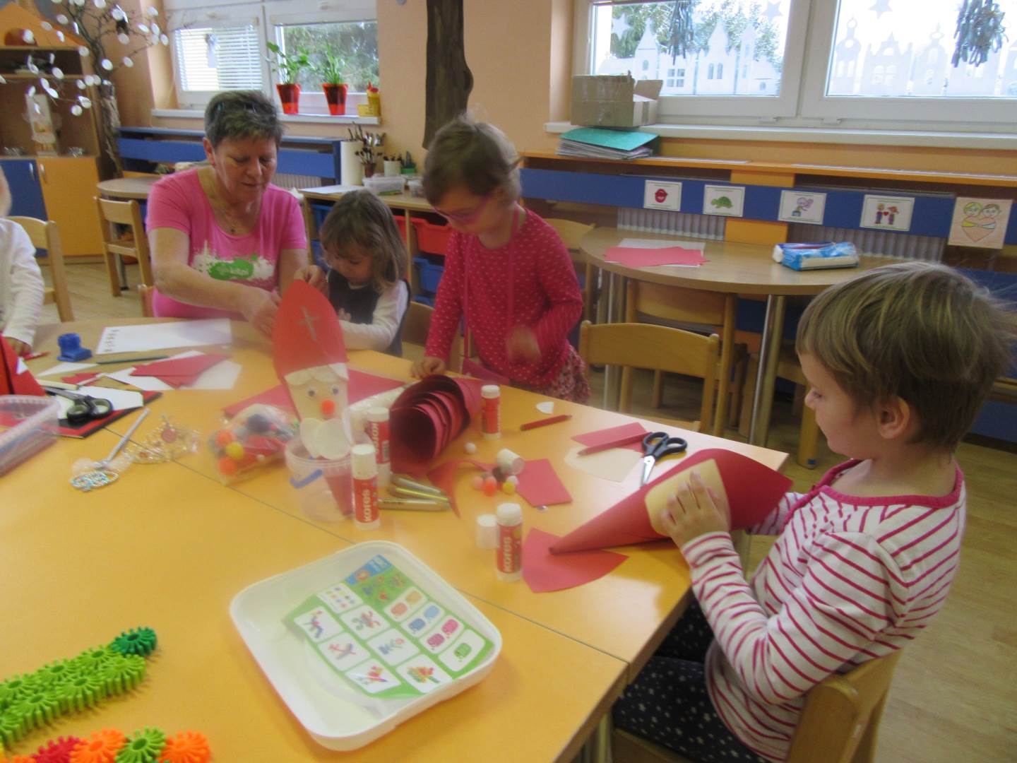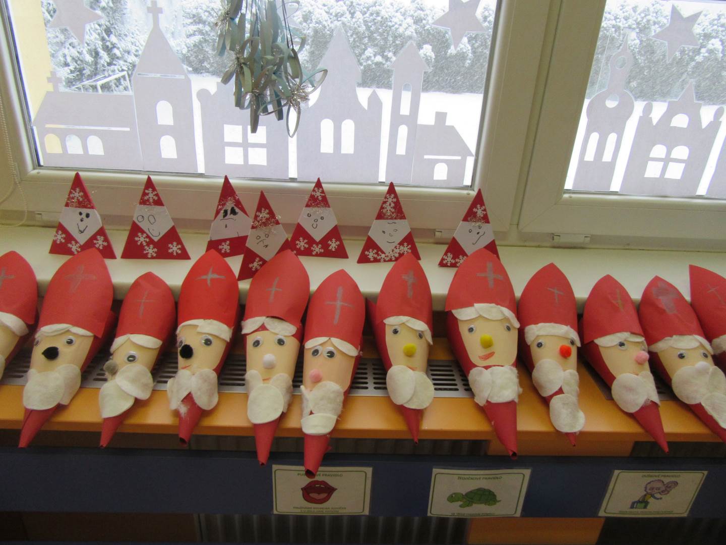 Podzim a barevné listí už jsou fuč a my jsme o krok blíž k vánocům. Protože čas opravdu neúprosně běží , měli jsme tento týden spoustu práce. Začali jsme výzdobou třídy, vytvořili jsme si opravdovou zimu s rampouchy na oknech, přidali jsme také něco vánočního. Protože se nám také blížil Mikuláš, cvičili jsme pylně na besídku. Četli jsme si proč vlastně Mikuláš naděluje, že ho doprovází andílek a čertík. Hlavně jsme si také vysvětlili, že čerti nás nikam neodnesou a jsou hodní.Děti vyráběly ozdoby na náš školkový stromeček a společně jsme zdobili. Nezapomeňte v pondělí na dílničky a rozsvícení stromečku. Moc bych poděkovala rodičům, že přišly s dětmi na besídku. Vaše děti jsou opravdu moc šikovné a hlavně nikdo se nebál a všichni vystupovali!!!!!! Prožívejte spokojeně advent a nepřehánějte předvánoční úklid....
