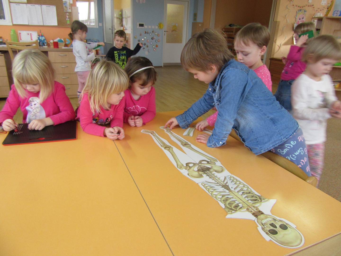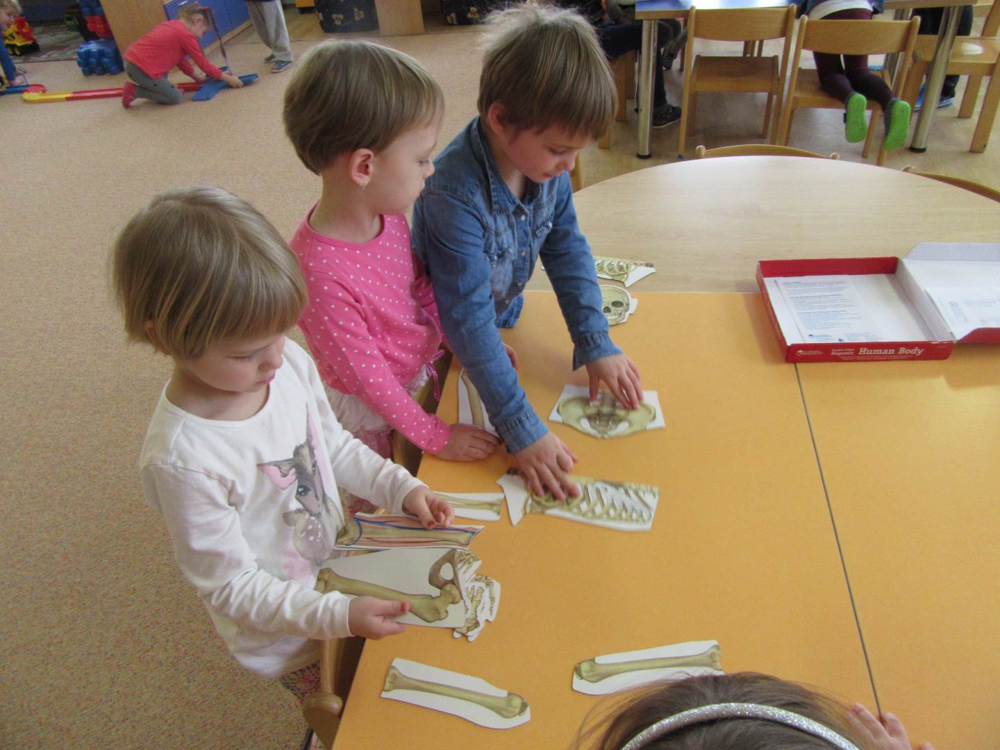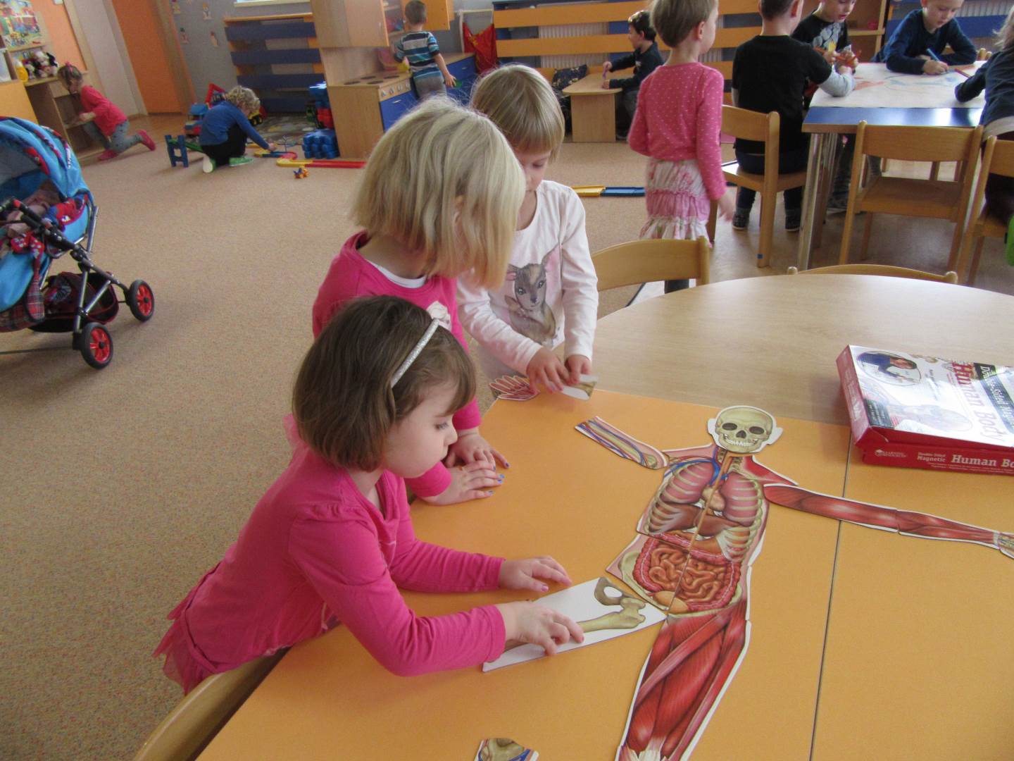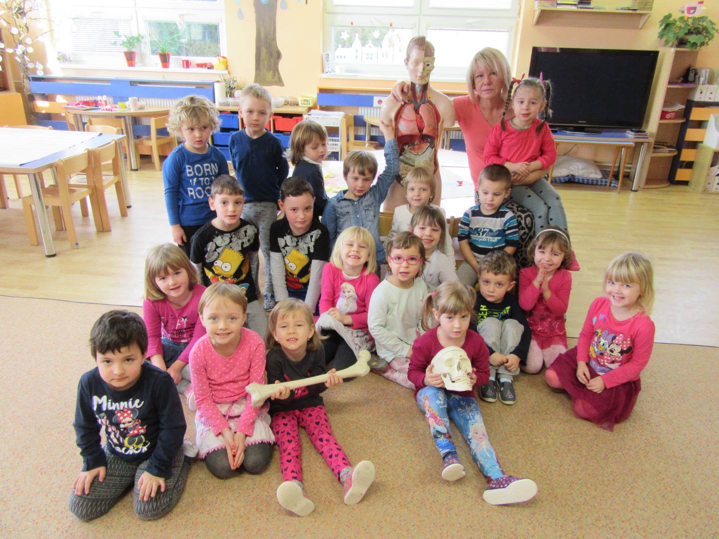 Tento týden jsme měli velmi zajímavé téma a děti i paní učitalky to moc bavilo. Povídali jsme si o lidském těle. Z přírodovědného kabinetu nám paní učitelka zapůjčiila skvělé pomůcky. Skládali jsme kosti, svaly, dokonce i obsah našeho bříška. Pozorovali jsme tlukot srdce po cvičení a zkoušeli co dokážeme pomocí kloubů. A to že naše tělo roste a sílí, potvrdilo měření a vážení. Pro zajímavost můžete kouknout na síť.