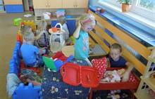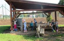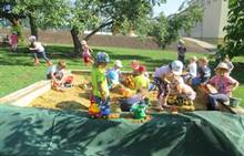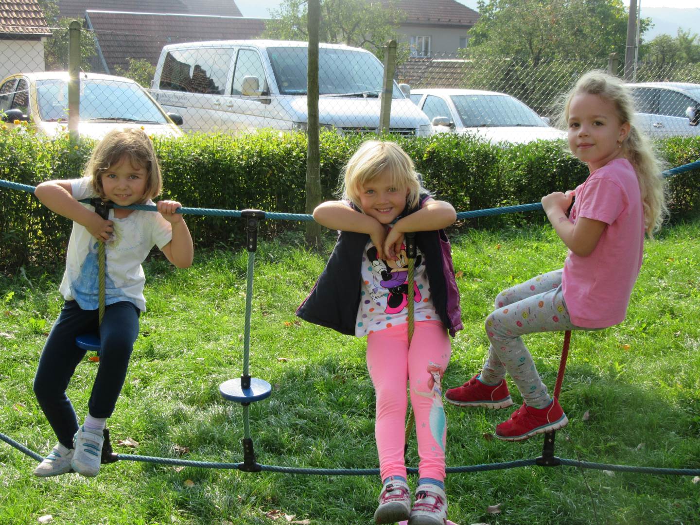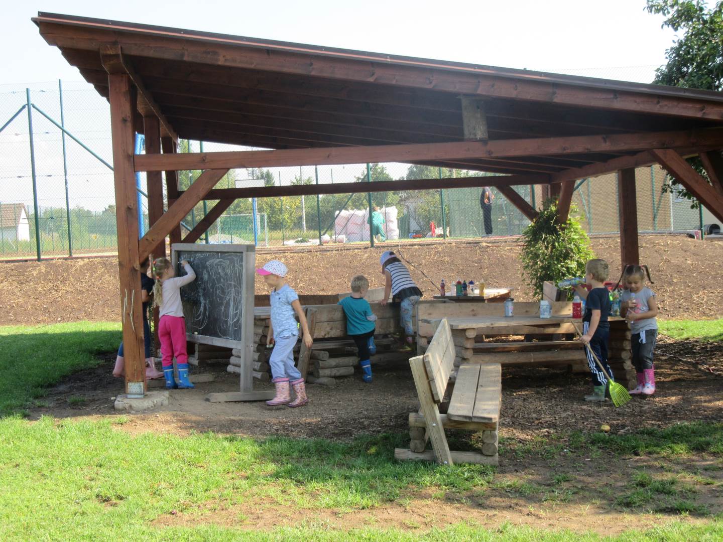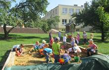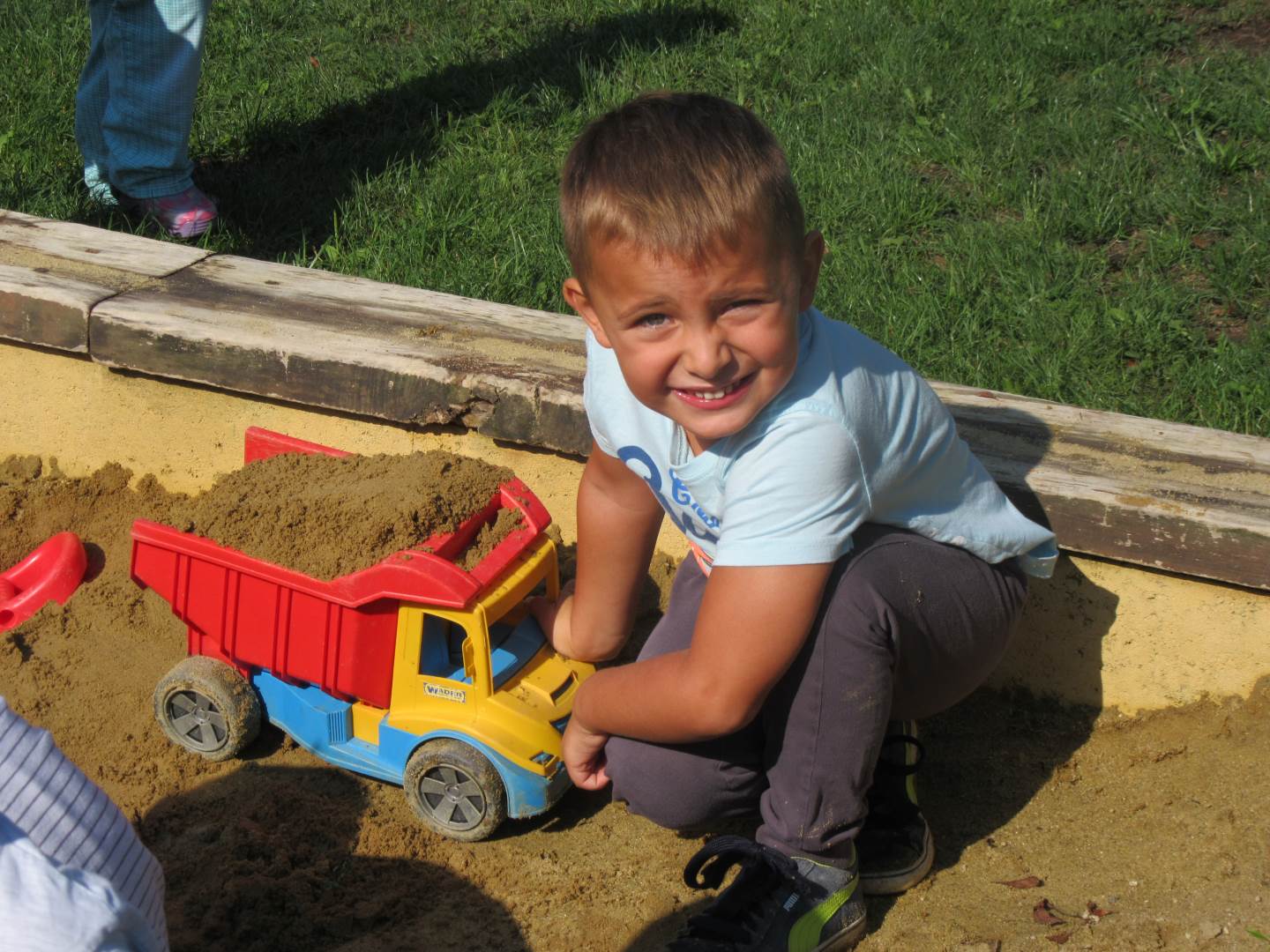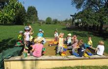 A protože nám přálo ještě krásné sluníčkové počasí, využívali jsme často pobyty venku na obecním hřišti i školní zahradě, kde se děti nejvíce vyřádily na pískovišti, kopci, věži i proutěném housence.