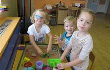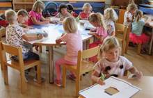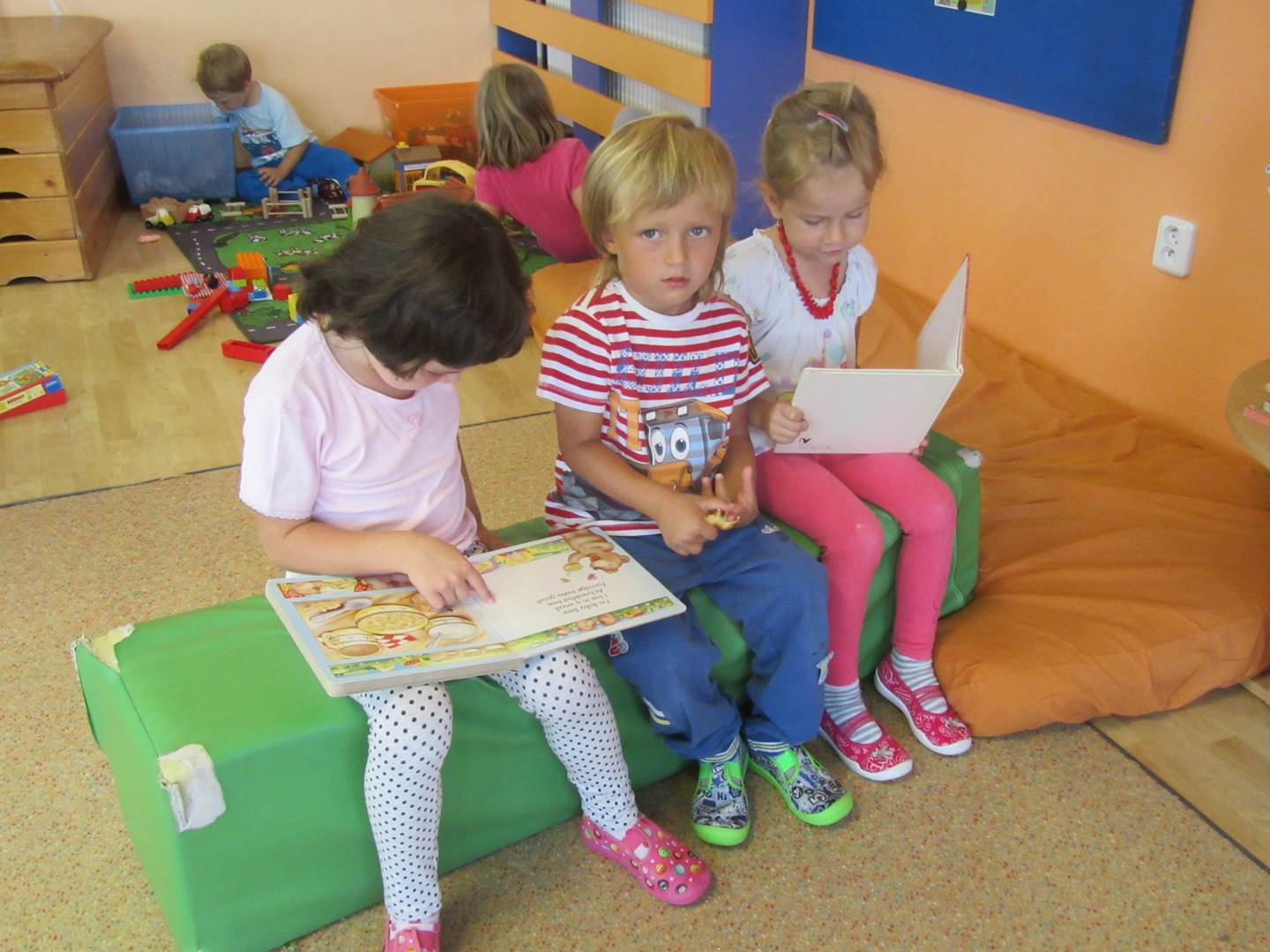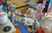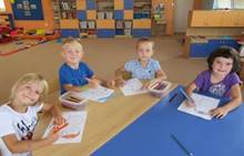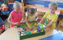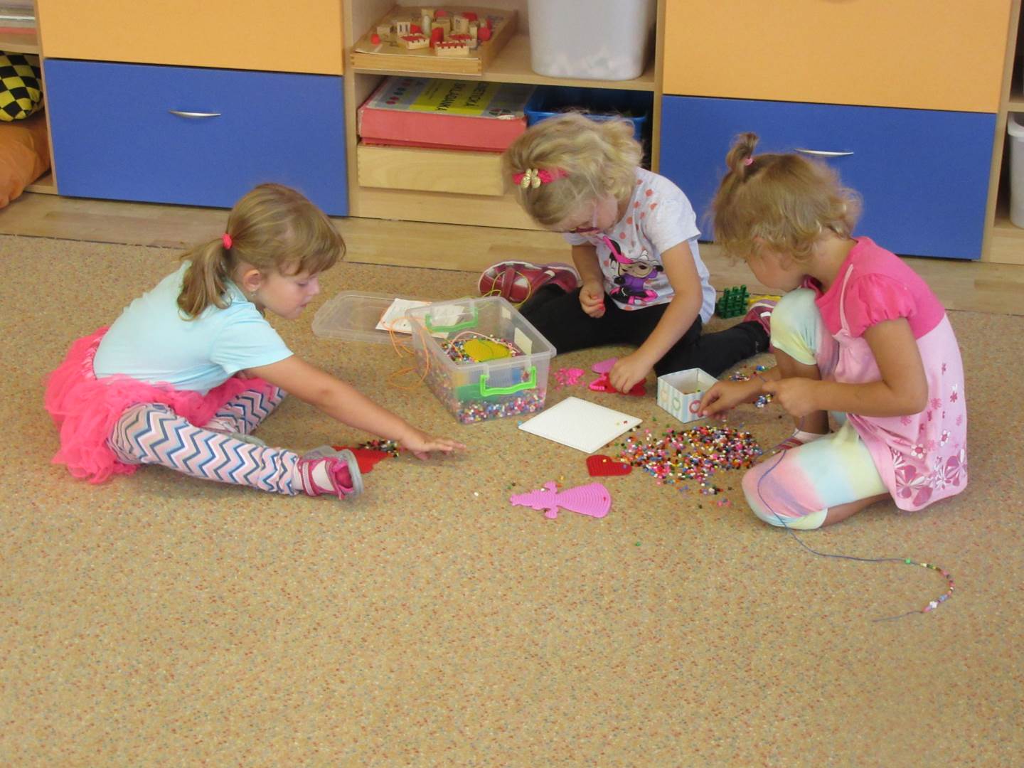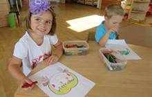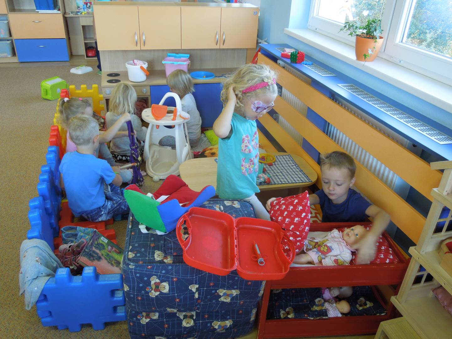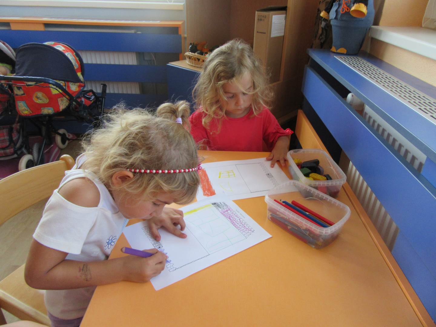 Předškoláci se pilně zapojují do pracovních listů. Společně jsme si vytvořili sluníčko pomocí otisků našich dlaní, které nám zdobí třídu.