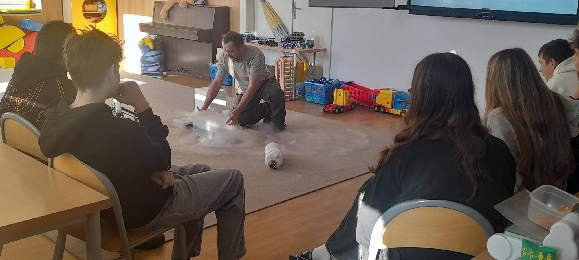 Dne 1. dubna 2026 se žáci 9. ročníku zúčastnili přednášky na téma ekologie, zaměřené na kvalitu ovzduší v obcích Knínice, Sudice a Benešov. Součástí programu byl také zajímavý pokus se suchým ledem, který názorně ukázal, jak se mlha může usazovat nad obcemi a ovlivňovat tak kvalitu ovzduší. Přednáška přinesla mnoho nových informací o znečištění ovzduší a jeho dopadech na životní prostředí i zdraví lidí. Žáci si odnesli spoustu zajímavých poznatků.